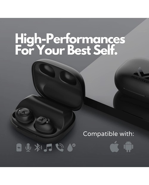 MULTITED RX Bluetooth Ear Buds - Water/Sweatproof, Designed for Workouts, Gym, Running, Hiking. 8 Hours Playtime, Premium Sound, and Deep Bass. Wireless in-Ear with Built-in Mic for iPhone, Android