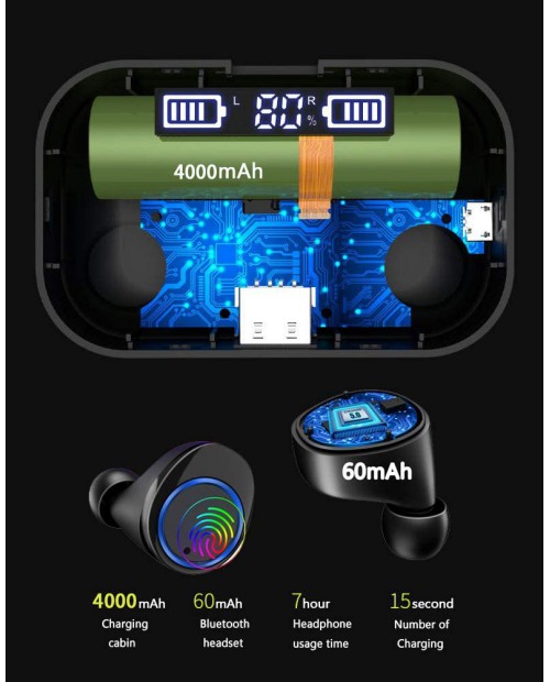 Wireless Earbuds, BLZK Latest Bluetooth 5.0 True Wireless Bluetooth Earbuds, with bass 3D Stereo Sound Wireless Headphones, Built-in Microphone LED Digital Shows Charging Charge (Black)